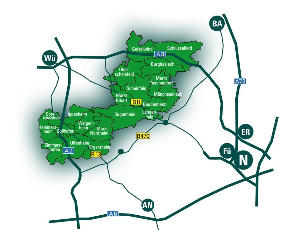 Unsere Region erstreckt sich über diverse Landschaften und Gemeinschaften. Hier sehen Sie das gesamte Gebiet auf der Karte.